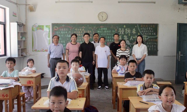 图为孙荣锦送篮球给石板冲学生。张舒畅 供图