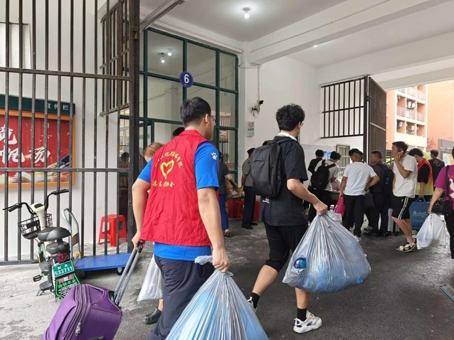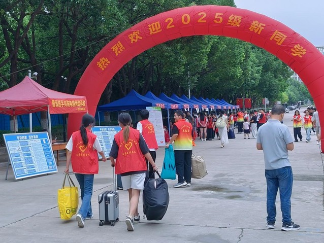 持续整天的新生报到工作如火如荼,有条不紊,到处都是忙碌的身影。三百多名志愿者从早6点到晚5点,用真诚打动着每一位报到新生和家长。