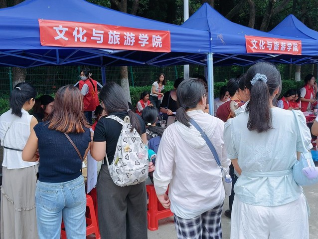 为确保新生报到工作顺利进行,文化与旅游学院提前召开动员会部署和安排。校园里早早挂起了整齐的迎新条幅,鲜艳雄壮的彩虹门,随风飘扬的刀旗,排排就座的帐篷,伴随着阵阵秋雨,校园里随处可见为新生和家长服务的志愿者,整个校园充满着喜庆及浓浓的迎新氛围。