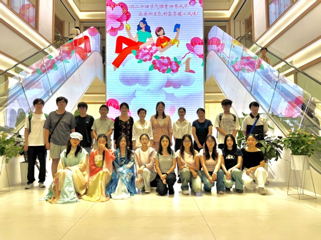 上午,师生们乘车抵达寿县后,便深度融入活动之中。同学们身着汉服,沉浸式参与世界旅游小姐总决赛相关环节,在二十四节气馆见证第二届文创产品设计大赛成果发布,还打卡品尝了特色“寿州豆乳奶茶”。接着,来到寿州孔庙,大家驻足参观,欣赏寿州锣鼓的铿锵、抬阁肘阁的精巧、小车灯与旱船的灵动,并与演员们热情互动。留学生们则与民间艺术家携手,体验剪纸的妙趣与“寿州香草”香包的制作,在一剪一线间感受传统技艺的温度。整场活动中,师生们既沐浴国际文旅盛会的热烈氛围,又亲历传统文化与现代科技的交融,更深切体悟儒家文化与楚文化的深厚底蕴。