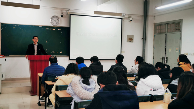 大会中,殷明明老师首先向大家介绍了毕业论文撰写的整个流程,包括选定指导老师,确定选题,提交开题报告,复审,抽查以及答辩等步骤。然后,殷明明老师给大家讲解了一些细节,比如查重比重、送至外审的比例等,要求大家诚信写作。之后,殷明明老师向大家强调了毕业实习的要求和纪律。