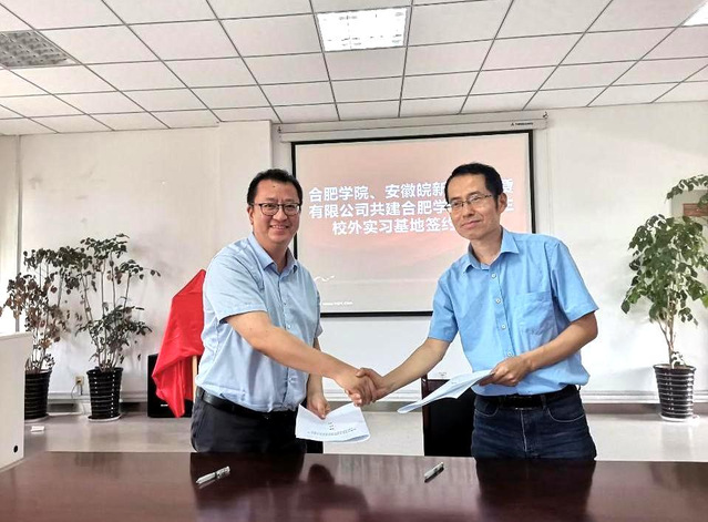 为提高人才培养质量,以更大合力促进产教融合、理实融合、学做融合,合肥学院语言文化与传媒学院携手安徽皖新融资租赁有限公司共建大学生校外实习基地,2022年7月8日双方在语言文化与传媒学院会议室举行签约暨揭牌仪式。语言文化与传媒学院党委书记董承军、院长丁增武、安徽皖新融资租赁有限公司董事副总经理张鲁徽出席并致辞,语言文化与传媒学院副院长殷明明、中文系负责人洪婧、皖新融资租赁有限公司人事行政部经理杨文文等参加了本次活动。