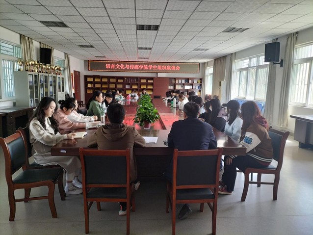为了更好地开展学生组织工作,推动学生会等组织的高质量发展。3月28日中午十二点十分,语言文化与传媒学院在一区善思楼C座二楼会议室召开了语言文化与传媒学院学生组织座谈会。此次会议由语言文化与传媒学院团委负责人刘政主持,党委书记储昭辉出席,学生会、新媒体中心、志愿者协会以及艺术团等组织的学生骨干参加。