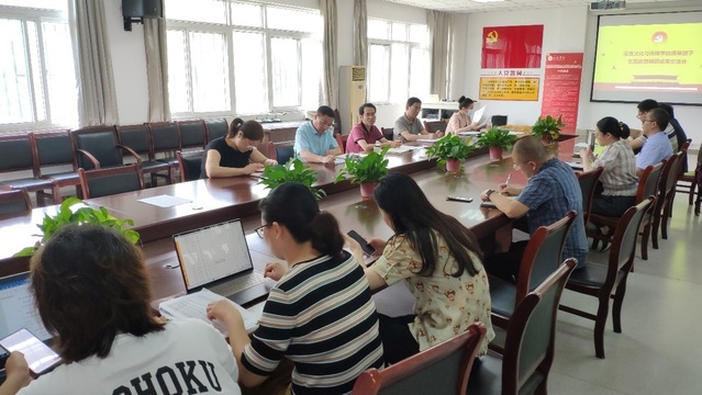 76日,语言文化与传媒学院在学院大会议室召开学习贯彻习近平新时代中国特色社会主义思想主题教育调研成果交流会。学院党政领导班子成员、党委委员、纪委委员、科级干部及各党支部书记参加了会议,会议由院党委书记储昭辉主持。