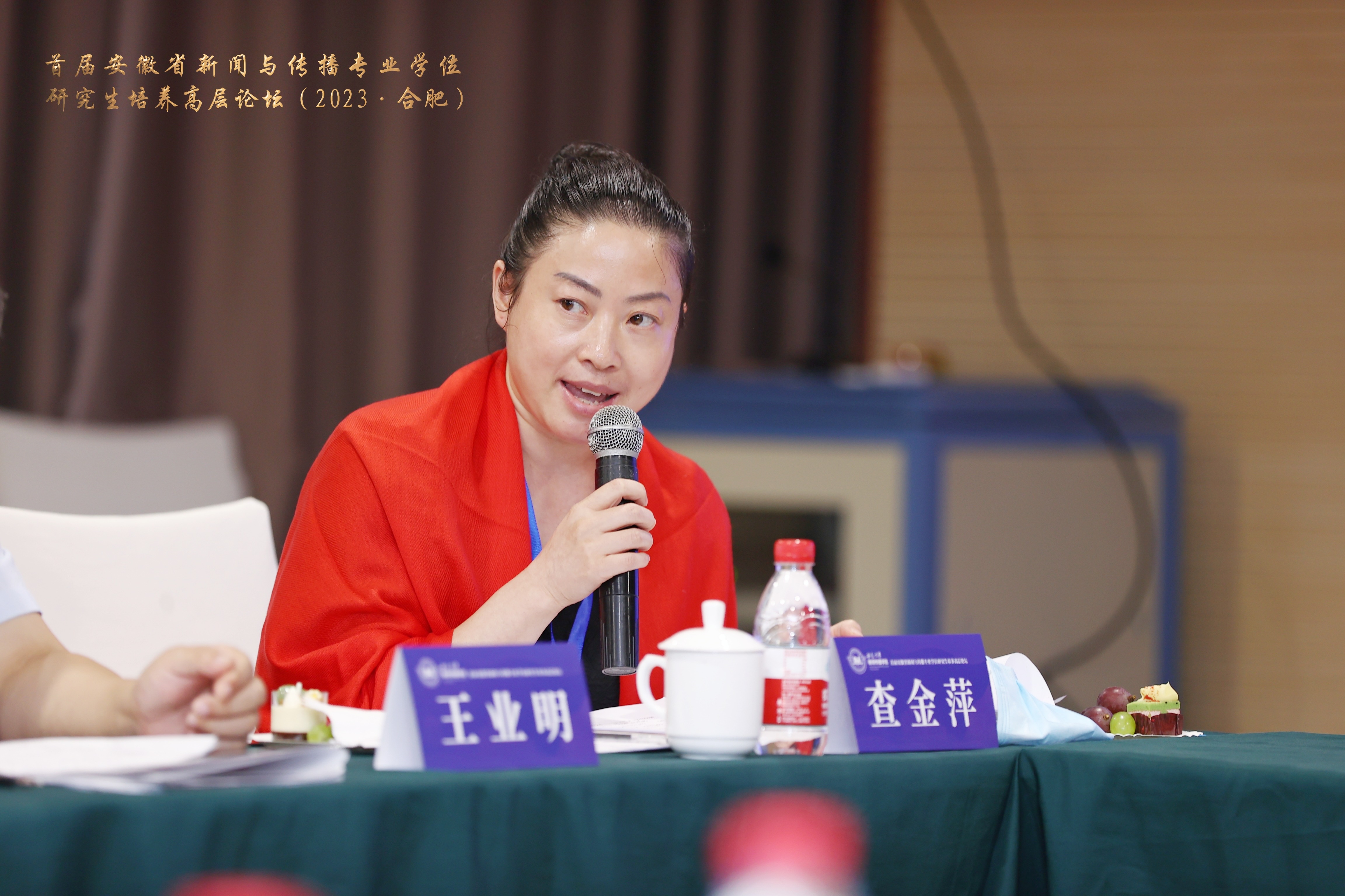 下午的圆桌讨论环节,省内外多家开办新闻传播专业方向的院系领导、专家就如何加强研究生之间的交流与合作、如何提升研究生的培养质量、创新能力等问题进行了深入讨论。我院丁增武院长简要介绍当前新闻传播学专业学生的培养过程和实践方式等,查金萍副院长介绍了新闻与传播研究生培养过程中可能面临的困境和未来规划,希望进一步加强校际间的协作交流,提升安徽省新闻与传播专业学位研究生培养质量。