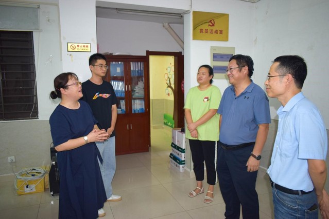 8月4日下午,合肥学院党委委员、宣传统战部部长贾峰,语言文化与传媒学院院长丁增武,党委副书记张爱萍,副院长殷明明,团委副书记刘政一行走入滨湖世纪社区看望我院暑期认知实习学生。