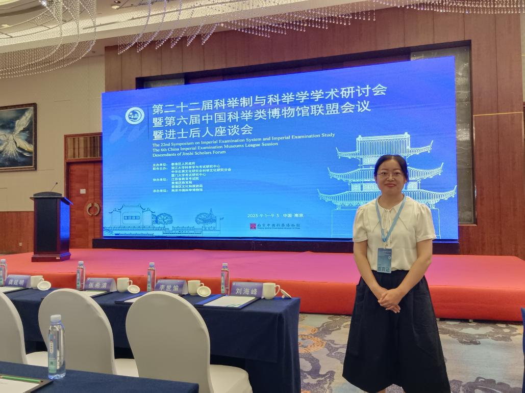 与会期间,刘美艳博士还和北京大学、浙江大学、复旦大学、南京大学、厦门大学、湖南大学、云南师范大学、西北师范大学、闽南师范大学、济南大学、淮北师范大学、重庆工商大学、广东财经大学、湖北工程学院、江西省吉水县县委宣传部的同仁就科举制与科举文学、宋代科举制度、明代科举制度研究中的相关问题做了交流。(文:龚润枝;审核:查金萍)
