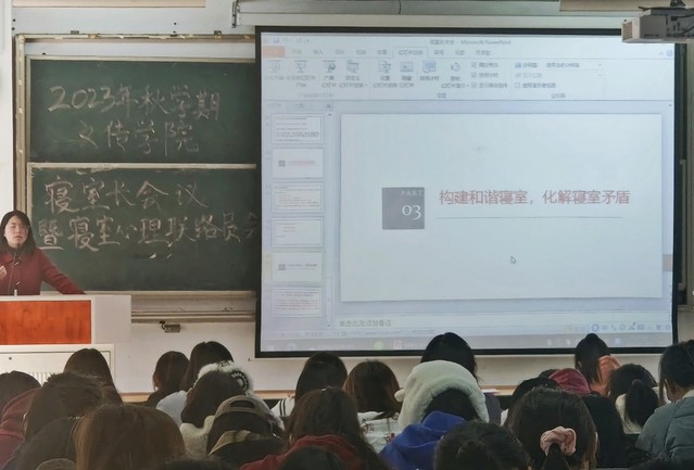为充分发挥寝室长、心理联络员在学院心理健康教育中的重要作用,进一步加强学生安全管理,11月17日,语言文化与传媒学院在5号楼101教室召开了2023年秋学期寝室长暨心理联络员会议,学工办主任顾盼盼和各年级寝室长、心理联络员参加了本次会议。