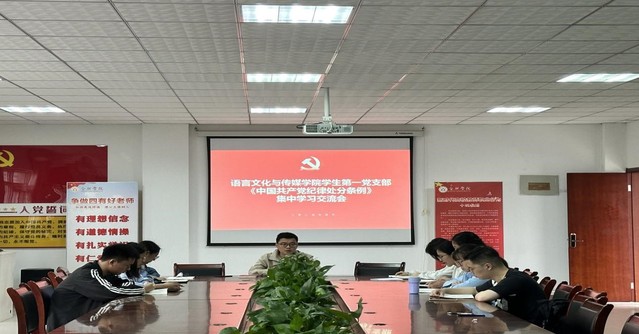 4月28日上午,语言文化与传媒学院学生第一党支部在学院大会议室召开《中国共产党纪律处分条例》学习交流会。交流会由学生第一党支部书记刘政主持,以集中与分散学习相结合的方式开展,旨在提高支部学生党员对党纪党规的认识,引导他们发挥党员先锋模范作用,争做新时代青年党员。