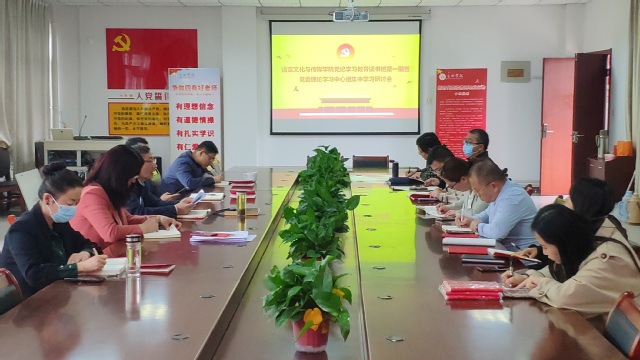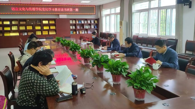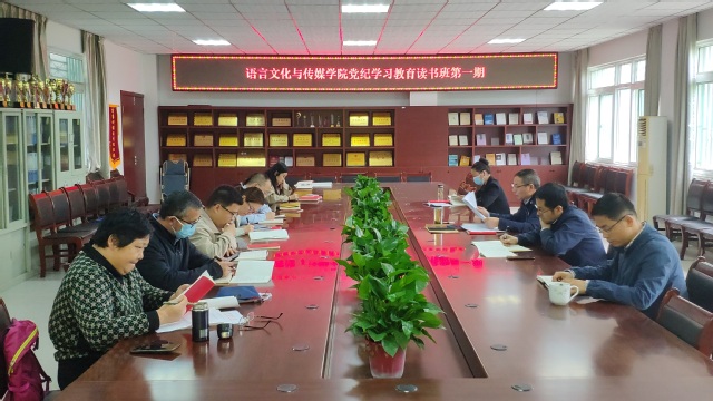 4月30日下午,语言文化与传媒学院在一期五栋二楼会议室举行党纪学习教育读书班暨党委理论学习中心组集中学习研讨会。学院领导班子成员、党委委员、纪委委员、科级干部及各党支部书记、系(中心)主任参加会议,会议由院党委书记储昭辉主持。