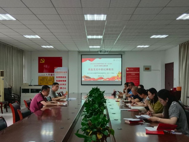 618日下午,语言文化与传媒学院教工第一党支部在学院大会议室举行了党纪学习教育专题党课。此次党课题为“重温党史中的纪律教育”,由院长丁增武主讲,教工第一党支部全体党员参加。