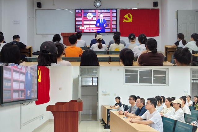 6月28日,语言文化与传媒学院组织师生党员观看2024年高校党组织示范微党课展播第二讲《党史中的纪律建设》,其中全体学生党员在5栋304教室集中观看。