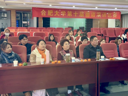 所有比赛选手演讲完毕后,吴书记对本次比赛进行总结,并对所有选手提出表扬。他表示,选手们的精彩表现不仅让他看到了学生们逐渐进步的德语水平,也让他感受到了蓬勃的学习热情。同时,他也感谢安徽中德教育合作基金会对本次比赛的支持,并对我院学子和外国语学院未来的发展提出殷切期望。
