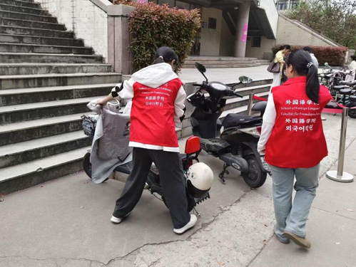 为进一步推动校园文明建设,营造整洁、有序、和谐的校园环境,外国语学院于4月7日至12日在一期食堂周边区域开展了“共建文明校园”活动。此次活动聚焦文明规范停车与食堂秩序维护两大项目,吸引众多师生参与,活动显著成效。