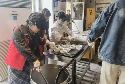 在食堂秩序维护方面,志愿者们在就餐高峰期分布在食堂各个区域,引导同学们有序排队打饭、就餐,避免插队、拥挤等不文明行为。同时,志愿者们还在同学们就餐后主动清理桌面垃圾,将同学们送来的餐具收好。在志愿者的努力下,食堂就餐秩序明显改善,同学们的文明意识也得到进一步提高。