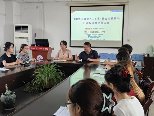 为积极响应国家乡村振兴战略,引导青年学子在社会实践中厚植家国情怀、锤炼过硬本领,6月19日中午外国语学院于一期八栋三楼会议室组织召开2025年暑期“三下乡”社会实践活动启动仪式暨动员大会。外国语学院党委书记吴孔宝、指导教师张正华及“三下乡”团队全体成员参加了会议。