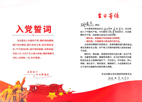 为深入贯彻中央八项规定精神学习教育,切实加强党的作风建设,6月24日,外国语学院党委组织开展主题党日活动,为入党时间在6 至 7 月的师生党员过集体“政治生日”、重温入党誓词,推动学习教育走深走实。