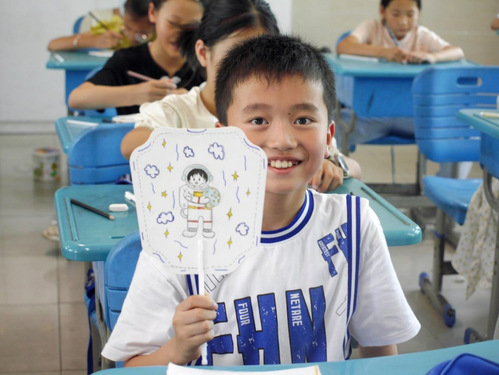 在小扇之上,绘大梦于心。在团队成员介绍完绘画主题“我的梦想”后,孩子们围坐在教室里纷纷投入了画扇的创作。他们热情地向老师分享自己的理想:救死扶伤的白衣天使、醉心研究的科学家、妙笔生花的艺术家……一切天马行空的理想此刻都在小小的扇面上用童稚的线条和鲜艳的颜色做出了生动的展示。孩子们用丰富的想象和细腻的画笔,将心中的梦想绘制在扇子上,每一笔每一画都流露出他们对未来无限可能的期许。