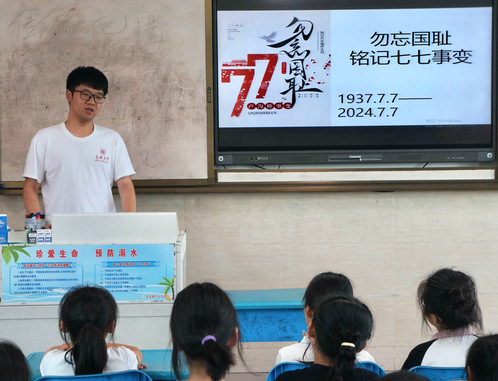 活动现场,学生志愿者们以生动的语言和丰富的史料,向孩子们讲述了七七事变的来龙去脉,以及这一历史事件对中国乃至世界产生的深远影响。通过PPT展示、视频资料播放以及互动问答等形式,志愿者们将复杂的历史事件变得通俗易懂,让孩子们深刻感受到那段屈辱而悲壮的历史。