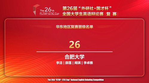“外研社·国才杯”全国大学生英语辩论赛2023年全国普通高校学科竞赛排行榜内竞赛项目由北京外国语大学主办,外语教学与研究出版社、北京外国语大学中国外语测评中心、北京外研在线数字科技有限公司承办。本届大赛于2023年11月启动复赛分为华北、华东、华南和华西四个赛区,采取线上比赛的形式。复赛包含五轮循环赛和总决赛。在循环赛环节,各参赛队伍须完成5轮比赛获得相应积分。最后,积分排名靠前的队伍获得全国决赛的参赛资格。