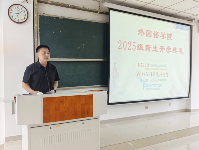 金秋送爽,丹桂飘香。9月10日上午9时,外国语学院 2025 级新生开学典礼在5栋101举行。学院领导、专业教师代表、辅导员及全体2025 级新生齐聚一堂,共同见证新生们开启大学篇章的重要时刻。院团委副书记张正华主持