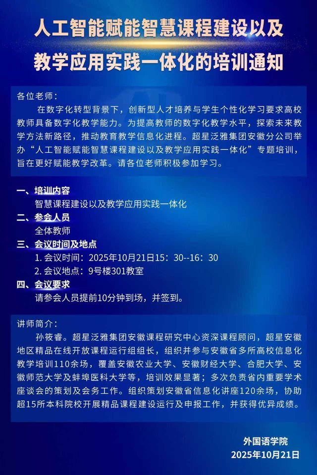 培训通知 | 人工智能赋能智慧课程建设以及教学应用实践一体化