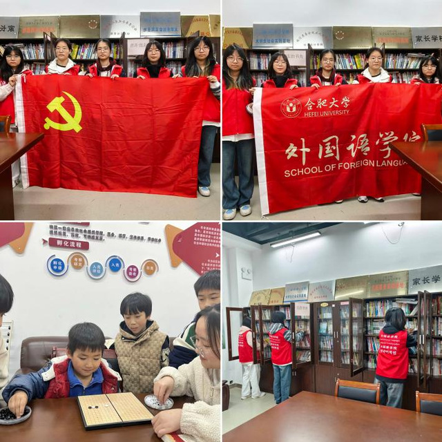 当天下午,社区活动室内气氛热烈而温馨。在儿童活动区,志愿者们耐心辅导孩子们功课,通过生动有趣的绘本阅读带领孩子们遨游知识海洋一旁的棋艺桌和画板前,们与小朋友对弈、共同创作,在轻松愉快的互动中传递关爱与温暖。与此同时,另一组学生志愿者则投身于社区的图书整理工作。他们在社区图书室内,细心地将书籍分类、排序、上架,并对书架进行了清洁,为社区居民营造了一个更加整洁、有序的阅读环境,展现了合大学子乐于奉献、踏实肯干的精神风貌。