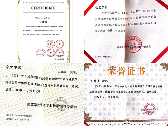 万事须已远,他得百我闲。青春须早为,岂能常少年。世间万事都必须从长远打算,年少时需要及时作为,因为人无法一直保持着青春年少。作为青年人,应珍惜韶华,潜心读书,敏于求知。年轻是优势、是资本,学习的路途才刚刚起步,工作的生涯还很长,梦想有多远,舞台就有多大。但梦想从学习开始,事业靠本领成就。王庚辰刚开始对就业的认知并不明确,在对自己未来的职业做出清晰的规划后,他坚定了考研的想法。王庚辰认为通过考研,不仅能够提升自己的专业水平,还能更好地了解专业相关工作的发展趋势,通过提高自身本领,从而在未来的工作生涯中提升自身竞争力。对于考研中的生活,王庚辰坦言,自己虽无法做到一整天泡在图书馆,但他会保证学习效率,在学习的时间里只做学习的事。例如他在下午两点到晚上十点半在图书馆的时间内,他会确保学习一小时休息十分钟的节奏完成既定目标。品行端正是做人的根本,勤劳用功是上进的阶梯。正因为勤劳奋斗,王庚辰在大学里也获得了许多证书,一分耕耘一分收获,想要多大的收获就要多大的付出,越努力才会越幸运。