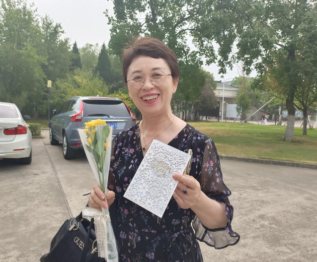 朵朵鲜花点缀着老师们的笑靥,一言一语娓娓道来难忘师情。“老师,教师节快乐!”诚挚的祝福表达着同学们发自心底的感谢,感谢老师们的敦敦教诲、无私奉献与一路相伴。收到贺卡和鲜花的老师们面露微笑,并对同学们的暖心准备表示感谢。