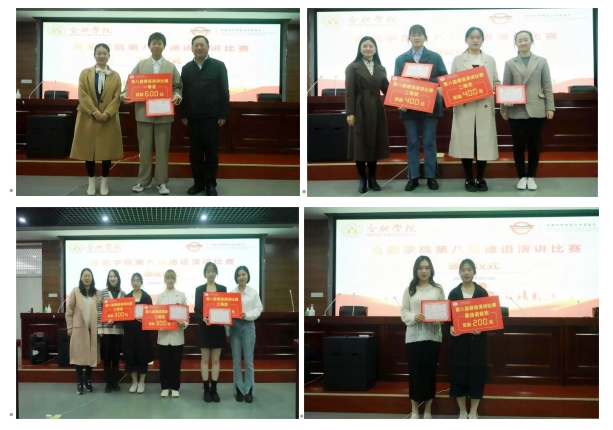 经过选手两轮紧张激烈的角逐和评委认真负责的评分,最终6名选手脱颖而出。中德物流专业王书瀚同学凭借卓越的表现荣获一等奖,胡旭迪和夏雨露同学荣获二等奖,向宇、张曼丽及程楠同学荣获三等奖。此外,最佳语音奖由向宇同学斩获。随后各位领导嘉宾与评委老师分别为获奖学生颁发证书与奖金,并合影留念。