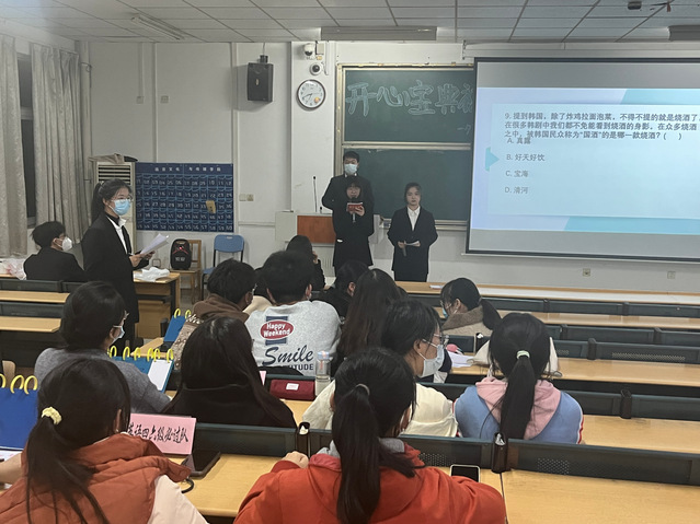 11月24日晚上六点四十五分,由外国语学院团委组织的第十九届外语文化周第十二届“外语开心宝典”初赛第二场在一期五栋101顺利举办,共有八支队伍参加本次比赛。