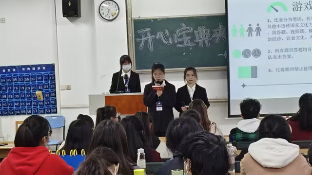 11月29号晚上六点半,由外国语学院团委组织的“开心宝典”决赛在一期五栋101顺利进行。共有八支队伍参与本次比赛,最后“朵蜜小分队”凭借默契的配合及出色的表现在此次比赛中拔得头筹。
