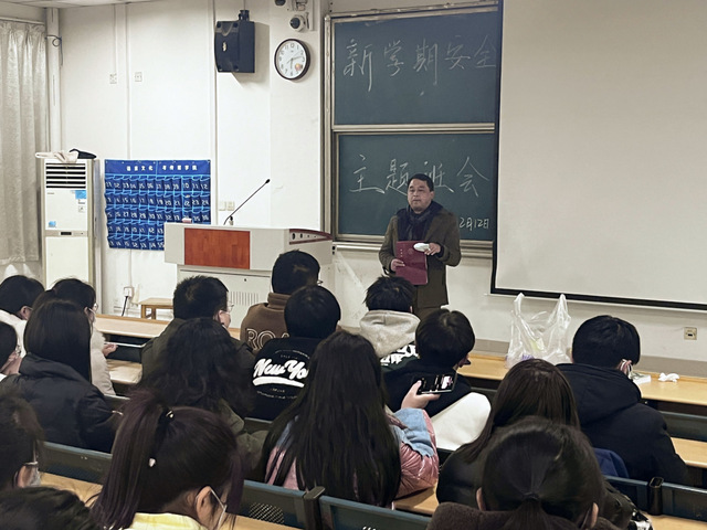 新学期伊始,万象更新。2023年2月12日晚上六点,外国语学院学工办主任李发俊老师在5栋101给到校的学生召开主题班会,带来了开学第一课——安全教育。