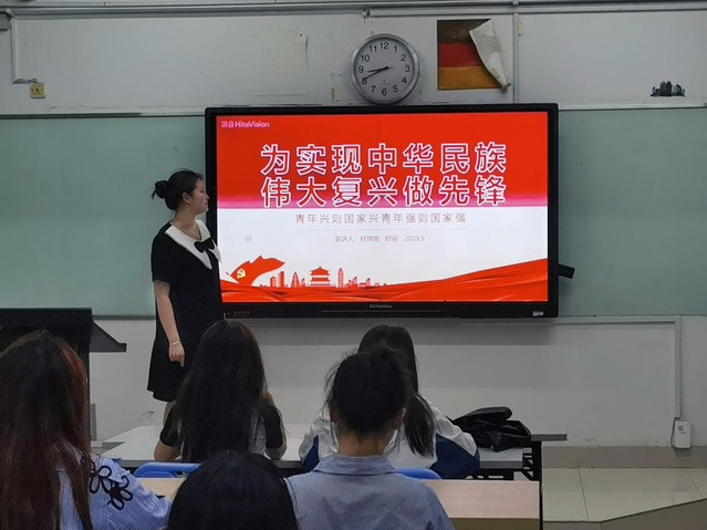 活动期间,主讲人首先介绍了当代青年对国家发展的重要性,并强调青年是推动历史进步的重要主体,是民族复兴和国家发展的有生力量。随后,主讲人从方向、品格、干劲三个方面重点讲解了新时代青年的新使命,并对每位参会同学提出倡议,号召同学们坚定信念、勤奋学习、坚定不移跟党走,以自身实际行动切实展现新一代青年的青春力量。