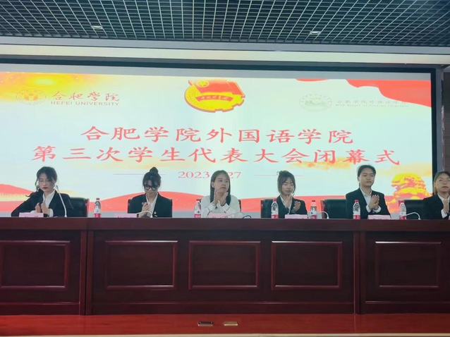 闭幕式上主持人刘姗姗报告了学代会选举计票结果、宣布了学生委员会委员当选名单。同时也通过了关于《合肥学院外国语学院第二十届学生会工作报告》的决议和关于修订《合肥学院外国语学院学生会章程》的决议。
