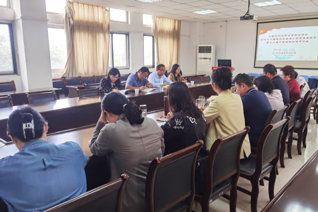 “只有把小我融入大我,才会有海一样的胸怀、山一样的崇高。”校党委委员、宣传统战部部长贾峰引用习近平总书记在天津考察时的讲话,鼓励外国语学院要通过四个融入,助推学校向国内领先、国际有影响力的高水平应用型大学迈进。一是融入学校国际合作交流,积极发掘教师潜能和对外交流资源。二是融入校园文化建设,密切与国际学生的融通交流,培养一批知华友华爱华的文化使者,讲好中国故事,传递中国声音。三是融入立德树人全过程,要总结课程思政比赛成果并加以固化和推广,让更多的学生在外语课堂中感受思政教育。四是融入服务地方经济社会发展,积极参与“双招双赢”和城市建设,服务国家战略和区域发展。(撰稿:王雨濛;审核:吴孔宝)