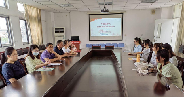 6月15日中午12时10分,外国语学院2023届毕业生座谈会于8栋301会议室举行。党委副书记吴孔宝、学工办主任李发俊及毕业班辅导员张正华出席本次会议,毕业班学生代表参加了座谈会。