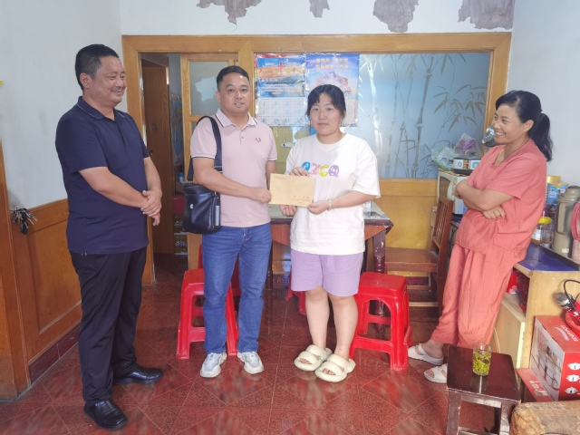 8月28日下午,我院党委书记吴孔宝带领学工办主任李发俊、辅导员王雨濛,走进22德语徐同学家中,并将慰问金和爱心物资交到她的手中。吴书记与家长学生亲切交谈,详细了解了学生的家庭情况,并介绍了学校的资助帮扶政策,鼓励学生勇于面对困难,努力拼搏、积极奋斗。“人生是场长跑,在于持久的坚持和永不放弃的信念。大学期间吃点苦,把基础打牢,以后用知识改变自己和家庭的命运,学校和学院也会给予全力的支持。”吴书记的话让学生和家长倍感温暖,徐同学表示,自己有信心以良好的成绩完成学业、回报社会,不辜负学校的殷切期望。