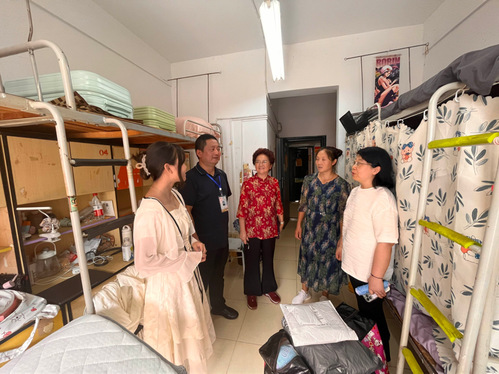 在走访宿舍的过程中,老师与同学们进行了亲切的交流,了解同学们来校后的感受,并语重心长地叮嘱。在宿舍建设的过程中,一要建设学习型宿舍,让宿舍成为同学们提高政治觉悟、树立远大理想、掌涯学业知识、练就过硬本领的学习园地;二要培育团结友爱、积极向上的宿舍文化,宿舍人人都能自律、自强、感恩、有礼,逐步建成作息规律、干净整洁、朝气蓬勃、共同进步的文明宿舍。