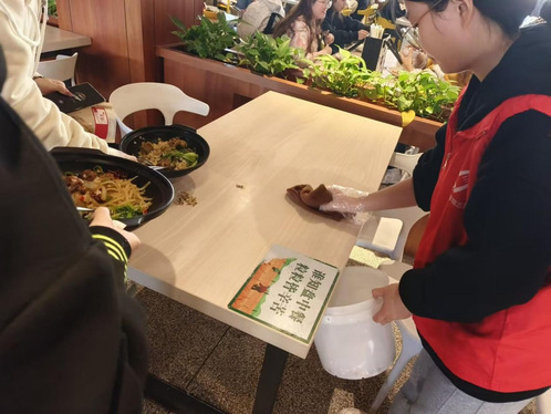本次活动具体分为两个项目。活动一是食堂秩序维护,具体内容是组织学生志愿者有组织有纪律地在一期校园食堂内进行餐桌清洁、餐余垃圾处理工作。活动二是规范停车。志愿者们有序引导前来就餐的学生规范停车,同时摆放停车不规范,妨碍他人进出食堂的车辆,确保良好的就餐环境。