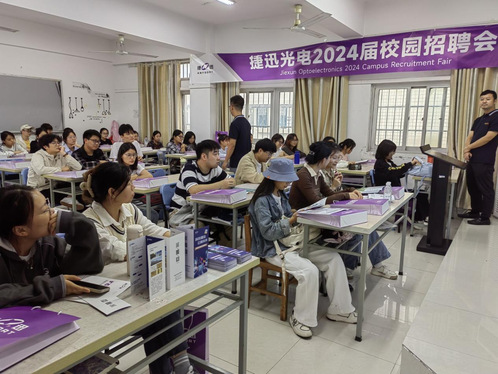 为了拓宽毕业生就业渠道,给予应届生企业招聘实时信息,9月21日下午3时30分,安徽捷讯光电技术有限公司于合肥学院8栋304教室举行了外国语学院专场招聘宣讲会。本次宣讲会中,公司负责人向学生们介绍了公司的基本情况、产品种类、企业文化以及招聘岗位,并为学生们提供了互动交流的机会。外国语学院2024届毕业生参加了此次宣讲会。