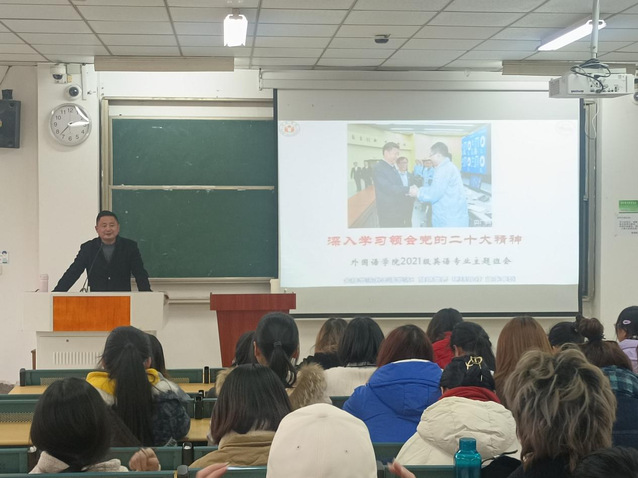青年强,则国家强。当代中国青年生逢其时,施展才干的舞台无比广阔,实现梦想的前景无比光明。为了让所有学生通过党的二十大精神的学习,认识到自己的光荣使命,努力成长为德智体美劳全面发展的社会主义建设者和接班人,外国语学院通过线上、线下和主题班会等形式,在全体学生中宣讲党的二十大精神