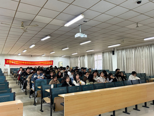 11月23日下午4时,外国语学院于一期5栋101教室举行了秋季学期企业高管进校园活动。此次活动特别邀请到安徽来盛日语培训学校的人事经理赵康为全体大一新生开展了职业生涯规划讲座。参加讲座的还有外国语学院张正华及王雨濛老师。