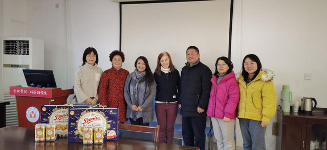新年来临之际,为彰显学院对外籍教师深切的人文关怀,2023年12月25日上午在学院三楼会议室,学院党委书记吴孔宝、院长叶旭萍、副院长李洁亲切慰问了在我院任教的外籍教师Lois Hansjürgens女士和Doina Maria Hotaran女士,并向她们送上了节日祝福和礼物,与她们进行亲切交谈。英语系副主任冉志晗和德语系副主任朱越一并参会。