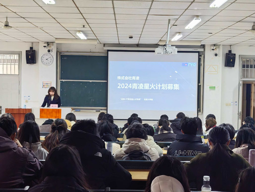 座谈会后,武汉青凌未来科技有限公司为我院日语专业学生进行了日语+IT复合型人才宣讲会,张小光总经理和廖宜青女士为学生们带来了一场关于日本IT行业现状、职业发展前景以及如何提高日语水平的精彩分享。东语系副主任刘亚钰、日语专业鲍德裕和辅导员王雨濛三位老师与同学们共同聆听。本次宣讲会旨在帮助学生了解日语+IT就业的前景,提高日语学习动力,增强专业自信,为他们的国际化就业之路铺平道路。宣讲会现场气氛热烈,学生们踊跃提问,与企业展开了深入的交流。