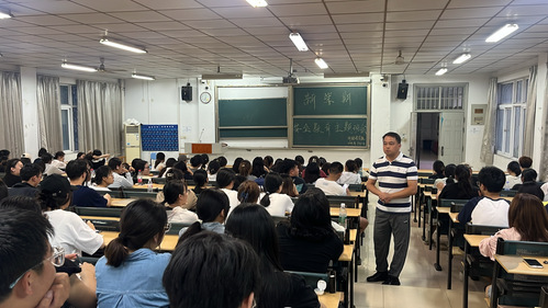 2024年9月1日晚,外国语学院学工办主任李发俊老师在5栋101给返校的学生召开了主题班会。