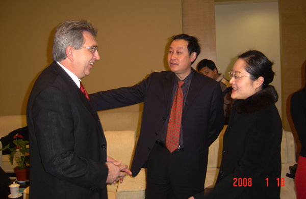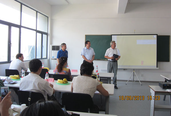 2013年9月,他再次来到合肥学院执教,在当年的安徽建筑节能技术平台研讨会上,赖默教授和他的德国助手介绍了德国建筑节能技术设计软件,演示了常用建筑材料节能性能的检测试验,并分享了他主持的“中国安徽—德国下州‘创新展亭’”项目。该项目是赖默教授从2008年开始谋划,到建成历时两年多时间。这是一栋集多种建筑节能技术和新型建筑节能材料于一体的,开展建筑节能工程应用实验研究的建筑物,曾作为2010年上海世博会德国园外项目参展。项目展示了当前建筑节能工程领域新型保温墙体系统、地源热泵技术和通风系统、吊顶辐射制冷技术、采暖玻璃等新型低能耗建筑形式和技术,为深入地了解建筑节能技术工程应用水平,学习和发展建筑节能先进技术工程应用提供了一个可借鉴的范例。