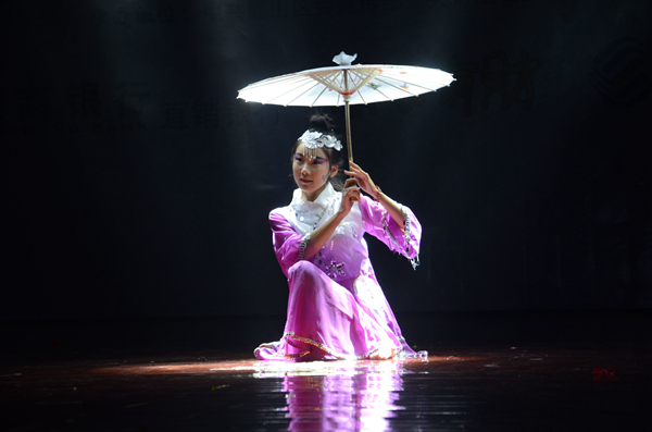 当观众还沉浸在激情四射的现代舞中时,我校舞蹈表演者们身着翠绿色传统衣裙,迈着优雅的舞步款款走来,柔美的舞姿宛如小荷才露尖尖角,挥动的舞袖仿佛绽放的花朵,生动表现了春雨动人的美感,古典舞《且吟春雨》将中国古代女子的恬静柔美,温婉动人表现得淋漓尽致。“细雨清风满竹林,几许飒飒嬉叶缕。惊雷震耳绕林间,醉竹弄雨似长情。”女舞者似细雨,男舞者似细竹,安徽医科大学带来傣族舞蹈《细雨醉竹》生动表现了洁净、吉祥、生命的主题,陶醉了全场。随后,一改前面古典舞的柔美缱绻,安徽艺术职业学院地舞者们用上升的力度、脚下的力量、后背的隆起表现泰山挑夫的质朴与担当,同时于粗狂中注入些许柔情,一支刚柔并济的中国舞蹈《脊梁》带给观众全新的视觉体验,引来全场观众热烈的欢呼声。另外,灵气十足的当代舞《水欢鱼跃》,欢快俏皮的维吾尔族舞蹈《摘葡萄的时候》,扣人心弦的顶碗舞《酒歌》等各具特色的舞蹈使人眼花缭乱,目不暇接,全场掌声雷动,经久不息。