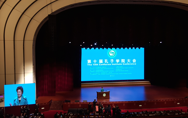 12月6日,第十届全球孔子学院大会在上海世博中心隆重开幕,本次大会的主题是“适应需求,融合发展”,大会由国家汉办、上海市人民政府联合主办。来自全球130多个国家和地区的大学校长、孔子学院代表共2300多人出席大会。副校长刘建中率国际交流合作处处长贾峰、副处长张慧应邀出席了大会及相关活动。 孔子学院大会是每年全球孔子学院的盛会,被誉为“教育达沃斯”。大会旨在总结经验,密切交流,加强合作,促进孔子学院健康可持续发展,推动世界多元文明交流互鉴。2015年10月30日,在国务院总理李克强与德国总理默克尔的见证下,中国孔子学院总部、德国施特拉尔松德应用科学大学与合肥学院合作设立德国施特拉尔松德应用科学大学孔子学院。目前,拟共建的孔子学院正在紧张筹备中,预计2016年正式运行。本次大会的召开为我校建设孔子学院提供一个宝贵的学习和借鉴平台。