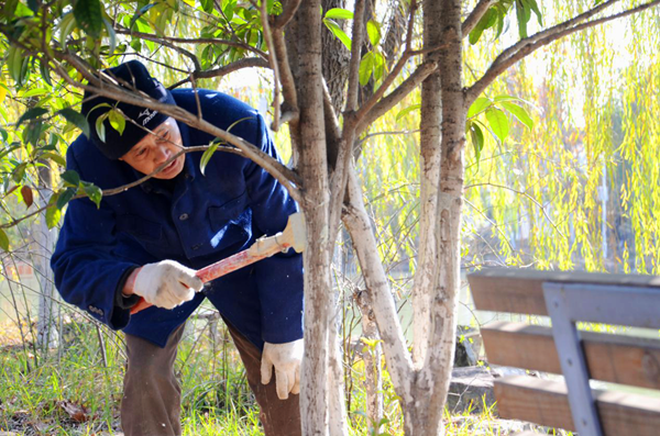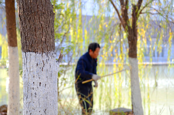冬季来临,环卫工在树木的树干部位涂抹生石灰,以期达到保温、防冻、防虫的目的。最近一个月以来,环卫工更为朴树等名贵树种进行捆绑缠绳,帮助其度过寒冷的冬天。